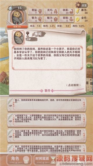 1、小屋作用:和母亲要钱16岁之前都可以有钱拿,家境与好感都决定了母亲给的钱数(母亲是概率出现)去自己的房间看书,(前面几岁是15点概率加一,后面是十点体力概率加一)增加智力(有一个特殊彩蛋…读一本故事书,连续看这本故事书之后增加十点智力)做手工增加灵巧 30点加2 (前面几岁是没有做手工这个选项)然后是去院子(前面只有在院子里奔跑30+2体制)可以在这锻炼,可以增加力量和体质都是30+2。