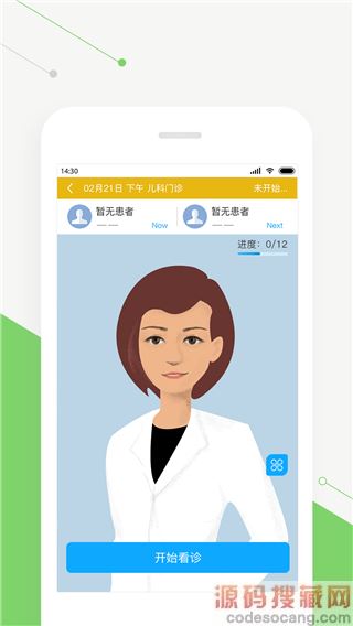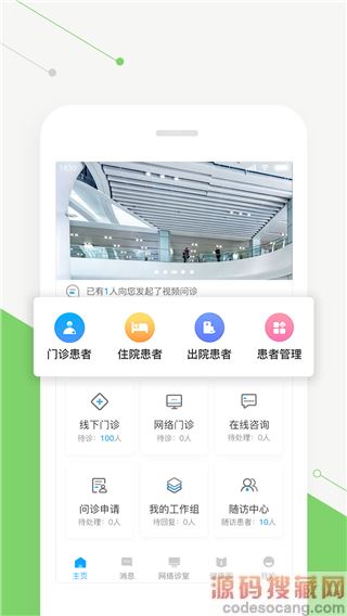 2、查看首页中各种问诊和咨询的人数信息,点击开始看诊即可快速进行诊疗工作。