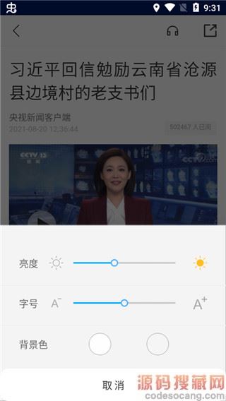 3、选择右下方的图标,点击后你就可以设置内容的亮度、字体大小以及背景色了。