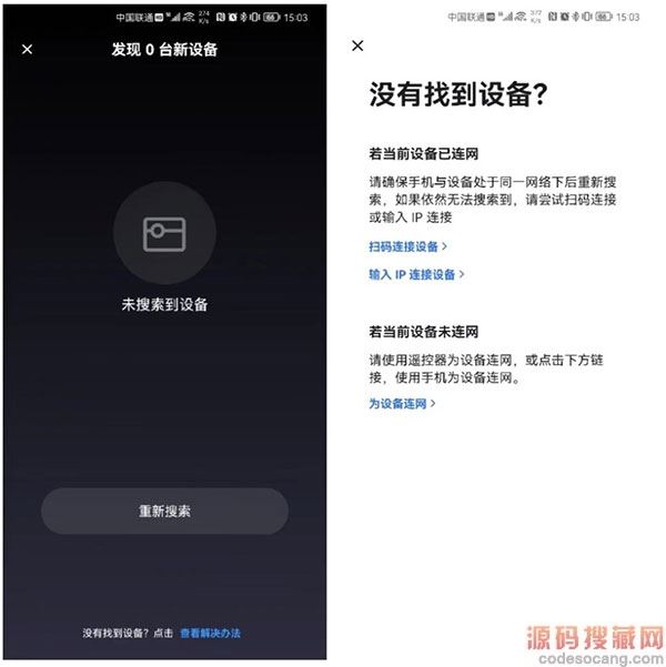 1、在搜索页面点击最下方的【查看解决方法】进入下一个页面,我们得到两种额外的连接方法:【扫码连接设备】和【输入IP连接设备】。
