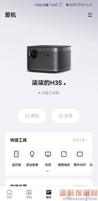 4、绑定成功后,手机App的【爱机】板块打开显示【设备已连接】,即可使用手机操作极米投影仪了!