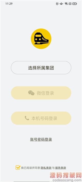 1、打开铁路人app最新版本,选择所属集团,点击本机号码登录;