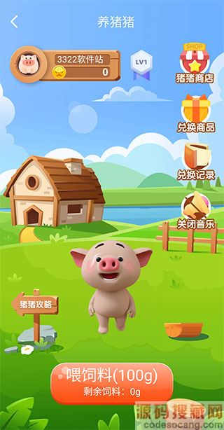 3、而在【养猪猪】页面,我们还能通过饲养虚拟的宠物小猪,来获取金币兑换自己想要的礼品。
