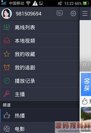 2、点击首页左上角的三根横线,可以进入到侧面的信息栏,里面有各种文件,例如:离线信息,本地视频等
