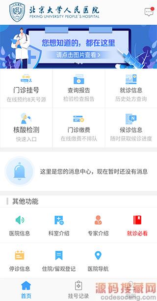 1、进入软件之后,我们点击首页轮播图下方的【门诊挂号】入口。