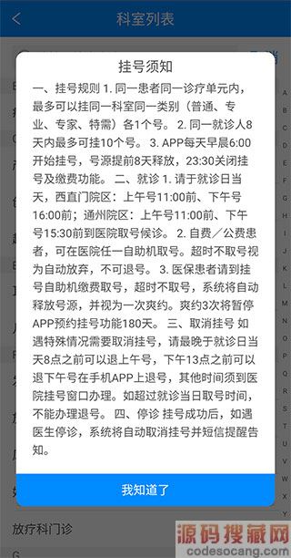 4、仔细阅读挂号须知后,点击最下方的【我知道了】按钮。