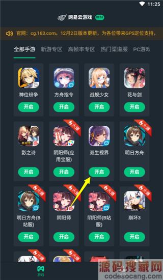 3、登录成功之后返回游戏界面,点击想要玩的游戏,点击下方的开启即可无需下载直接进入游戏;