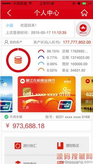 2、点击个人中心,可查看银行卡余额,以及可以看到理财的详细信息