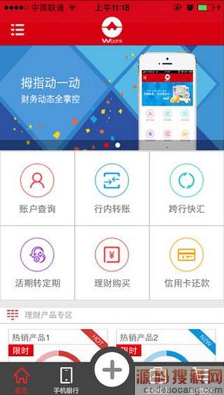 3、在主页面就能看到账户查询、行内转账、跨行快汇、活期转定期、购买理财、信用卡还款等六大功能