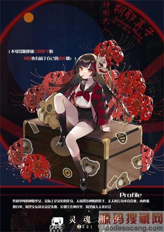 4、观察情报:性格单纯的神明少女,实际上是灾厄的化身。人前摆出神明的架子,无人时行为率真直爽。内心孤独自卑,渴望交友却又总是失败。长期宅在神社里,渴望融入人类社会。