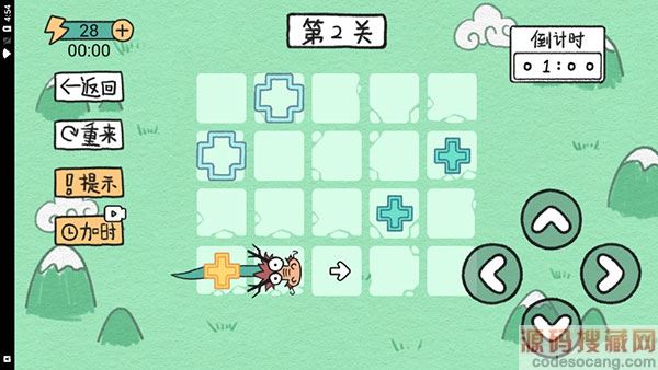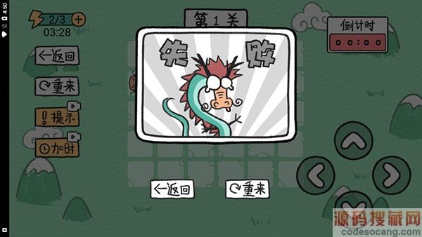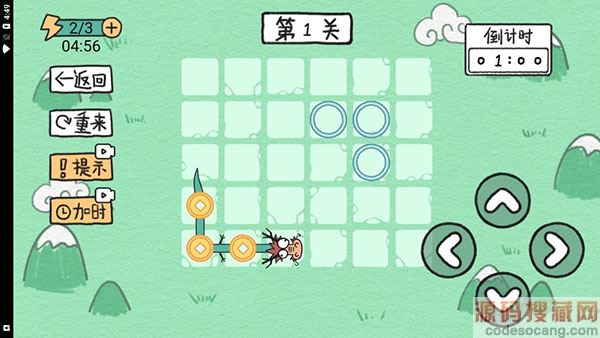 2、该游戏是有时间限制的,大家要是没有在一分钟内将贪吃蛇放入指定格子,则为失败。