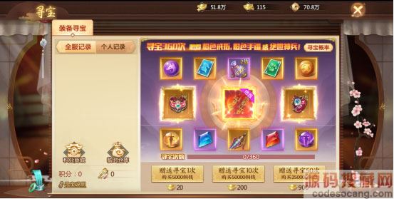 装备寻宝可以获得基础材料、经验药、属性丹、宝石、高阶高品质装备和绝版神兵利器,高品质的戒指和手镯只能通过寻宝获取,所以上仙们要好好把握机会,佩戴戒指和手镯可以和其他上仙拉开不小的差距。每次寻宝需要消费对应数量的宝藏钥匙,宝藏钥匙可以从商城购买。