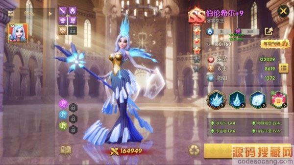 首先,我们要知道,游戏里一共能上阵5个英雄,2个英雄当前排,2个英雄在中间,1个英雄在后排,在我们新手引导期间,各位一定会获得A级英雄【冰雪女王-伯伦希尔】。这是一个适用性拉满的水系法师,大招是高频AOE伤害,同时有几率触发冰冻效果,持续期间不可释放技能必杀和主动技能,且无法行走,兼具爆发和控制。不管是前期还是中后期的PVE/PVP,甚至是BOSS战,都有上场的机会。尽管它初始是个A级角色,但是游戏获得相同角色可以转化成碎片,或者扫荡深渊之镜获得角色碎片,这些碎片可以用来提升英雄星级,所以冰雪女王值得,前期推图非常好用。