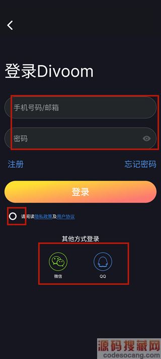 3、可以使用手机号码/邮箱进行注册登录,同时还支持微信以及QQ一键授权登录。