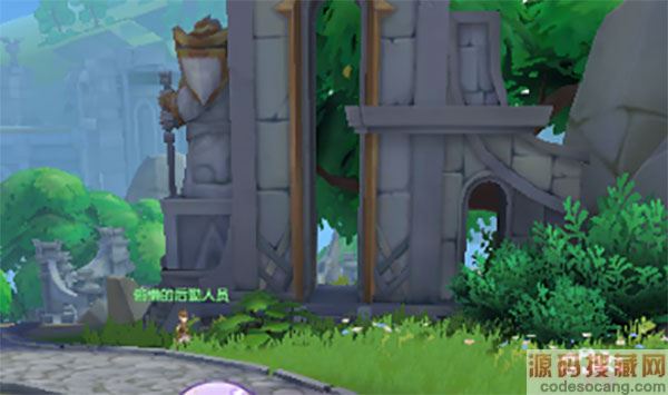 十字路口直行传送到下方,注意右边的灌木丛,走近会触发按键,即可获得宝箱。同一个地方,这有个偷懒的后勤人员在走来走去,和他对话有惊喜。