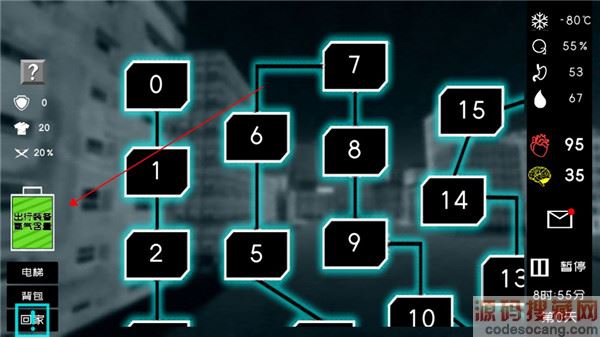 1、游戏开始后,先过掉剧情。点击左下角的仓库,拿取物资。基地是以俯视角呈现。