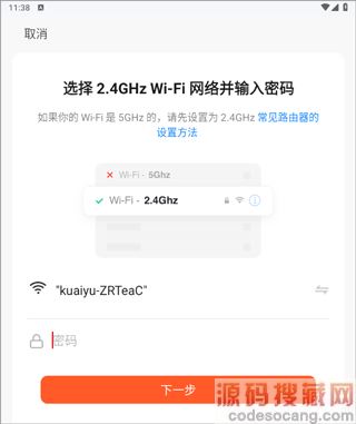 3、输入设备连接的WiFi密码,点击下一步依照提示进行操作即可连接。