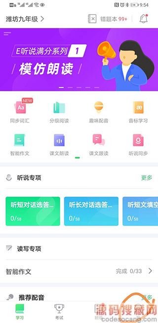 1、在本站下载安装并打开E听说中学app,点击右下角我。
