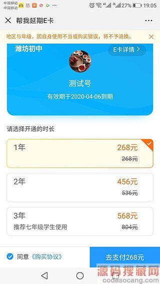 8、选择想要购买的时间,再点击支付,支付成功后就可以使用了。