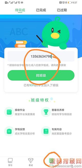 9、支付完成后返回主界面,点击下方班级,输入英语老师手机号点击找班级。