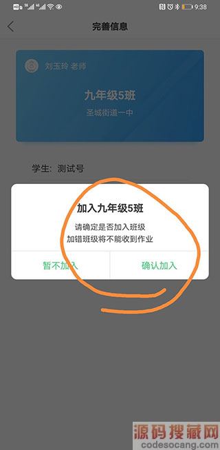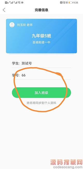 10、选择所在班级,输入自己的学号,如果没有学号可以随便填一个数字,后台会统一修改,点击加入班级。