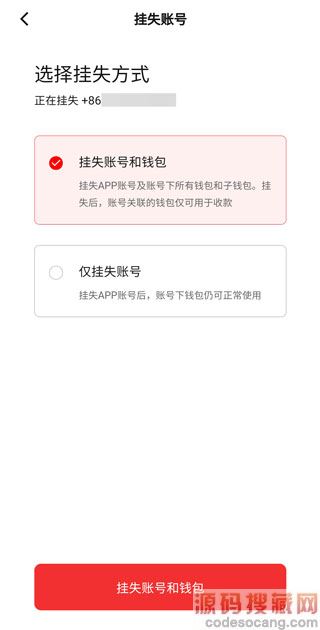 4、选择挂失方式,点击下方按钮即可紧急挂失了。