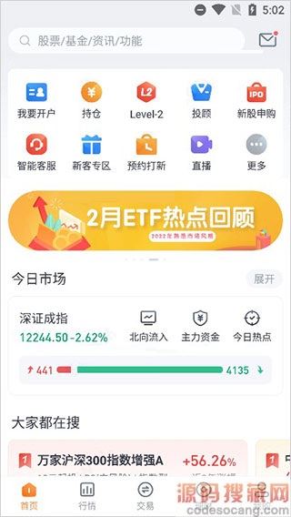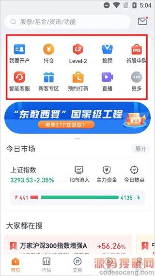2、在首页有我要开户、持仓、投顾、新股申购、智能客服、直播等功能