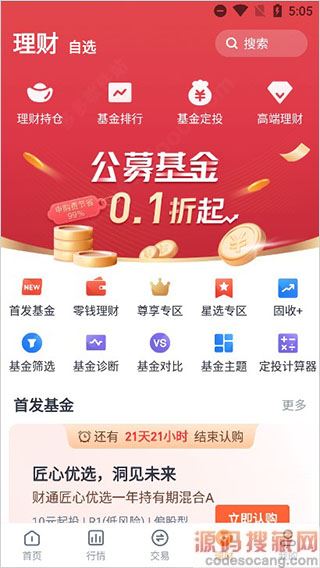 5、在理财页中可以进行理财持仓、基金定投、高端理财等操作