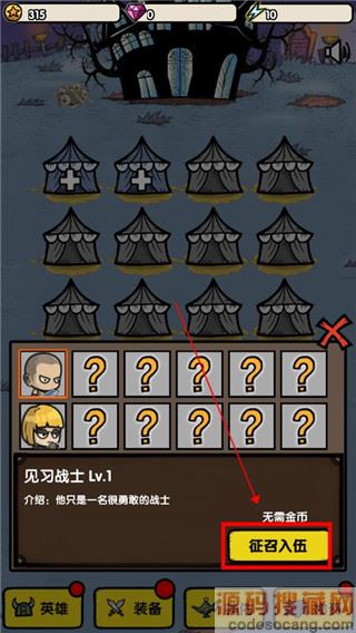 1、进入游戏后,首先选择营地,每个营地可以招募一位英雄。