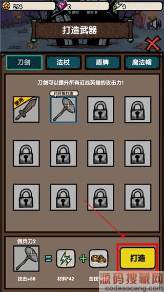 4、游戏中的所有装备都需要先解锁,解锁后就可以花费材料打造了,打造完成会自动装备。