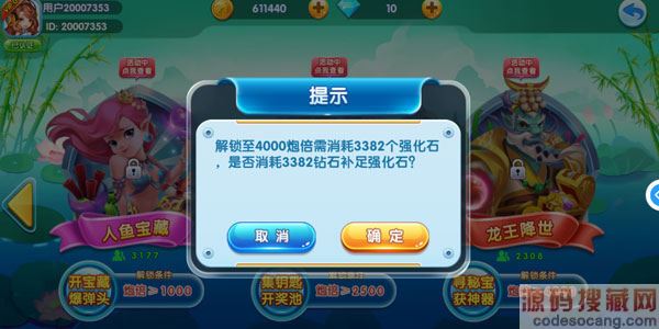 3、如果你的强化石或者钻石足够,可以直接升级解锁4000倍炮台,需要花费3382个强化石或者是3382个钻石。