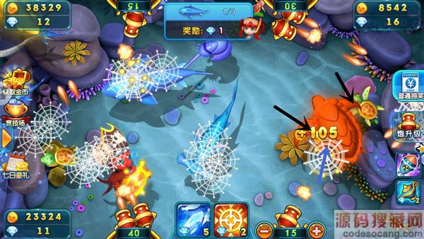 攻打大鱼能获得更多金币和钻石奖励,但同时也需要消耗更多的金钻,如大白鲨、大金鲨、大海怪等。还要注意的是,如果大鱼还没游到你面前,你使劲拼命进攻也是捕捉不到的,还浪费金币。