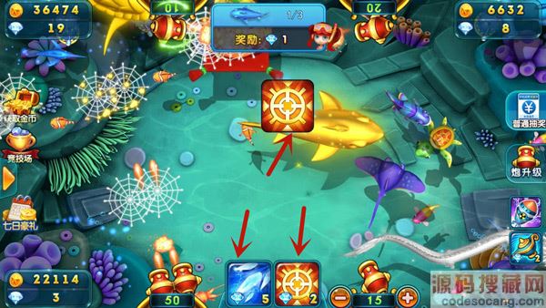 升级炮台能提高捕鱼的杀伤力,攻打大鱼和远处的鱼时必须要使用大炮,如果炮弹不足,是无法捕捉成功的,因此还需要升级炮弹的倍数,倍数越高,冲击力越大。升级炮台需要消耗一定的钻石,钻石如果不够可以在游戏中升级赢得钻石或者去商城购买。