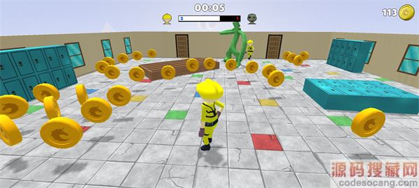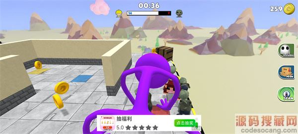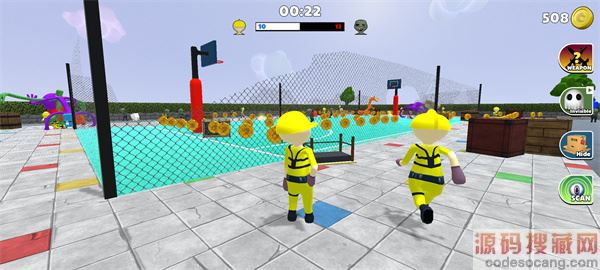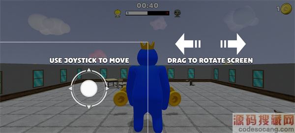 1、下载进入彩虹朋友躲猫猫游戏,滑动左侧的方向盘即可控制角色移动,右侧可环绕四周;