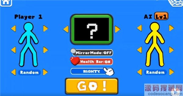 1、首先大家进入至尊决斗者火柴人游戏,打开游戏有人机和1v1,还可以与好友进行1v1的pk赛,。