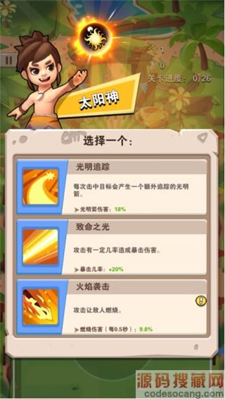 太阳神技能是光、火系攻击技能,是前期优先选择的神,特有的追踪技能,对攻击者造成额外的伤害,全屏追踪,十分爽快。