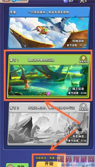 3、接着,选择要进行冒险的章节,并点击下方的开始进入。
