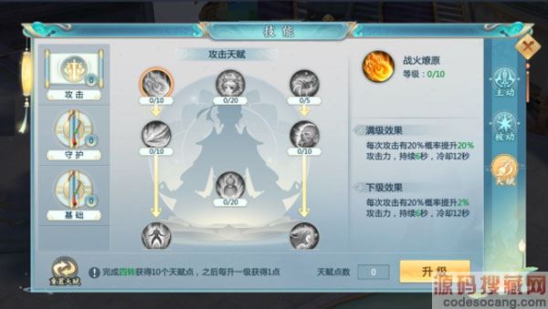 天赋分为三大类:攻击、守护、基础。每个天赋都有等级上限,不同天赋有不同的技能等级上限,天赋每提升1级,对应增加的技能效果或属性都会获得大幅提高!