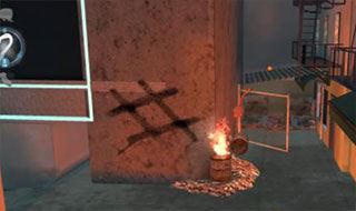 点燃面包后,我们右侧的地上会出现一个黄色的光圈,这就是我们放置燃烧的面包的位置了,把面包放到黄色圈子里面,然后后退几步。放好面包后,门被打开,走出一个人,任务就完成了。