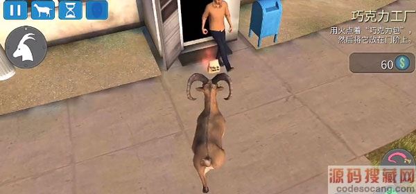 拿到巧克力面包后,系统提示我们用火燃烧面包。马路对面有个油桶已经被点着了,我们穿过马路走到油桶前。面包被卷在山羊的舌头上,够不到火源。我们尝试多晃动几下,或者是可以让山羊在油桶前跳几下,这样面包就会随着上下摆动。多操作几次,巧克力面包就可以碰到火源,然后就燃烧起来了!