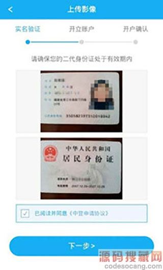 4、点击上传身份证正反面。 (身份证必须拍摄清晰、明亮,且不得有反光)