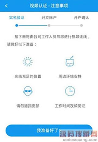 6、点击进入视频认证。视频中,工作人员会询问你,是否本人,是否自愿开户(回答两个“是”即可)。