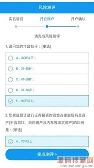 8、风险测评(第6项起,建议均不选A,方便后期开通创业板和融资融券)。