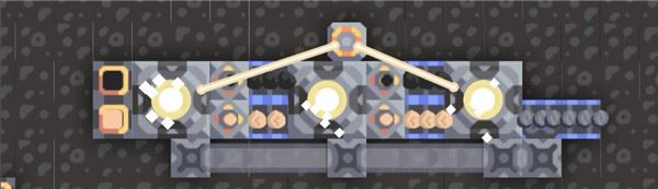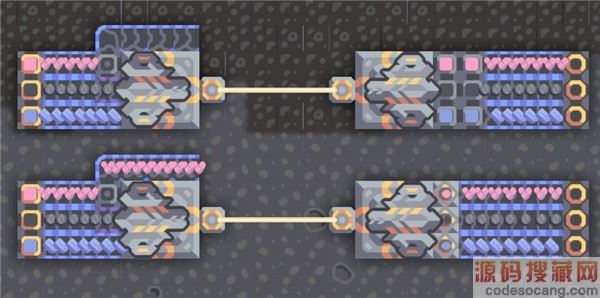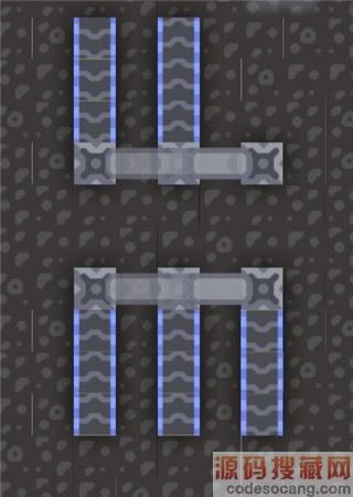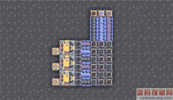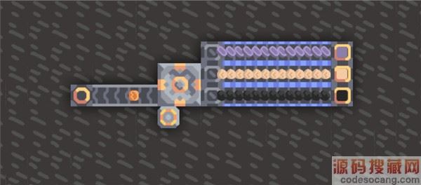 双原料,代表是小硅厂,其他还有爆炸混合物,玻璃,魂灵修理机等。无产出时,纵向的传送带可以删除。只做一边也没问题的~