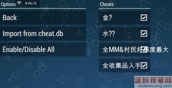 7、点击Enable/Disable All(全选/非全选),全部勾上金手指,接着点lmport from cheat.db,这样就算保存金手指成功了!