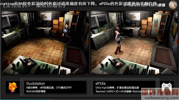 4、不过DuckStation在24位色彩渲染时色彩过滤准确度有所下降,而epsxe的色彩过渡会平顺自然一些;