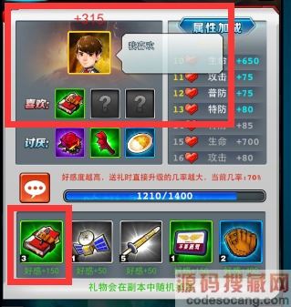 4、游戏中比较有特色的地方是玩家可以在【人间体】界面给人间体送礼物,当人间体得到自己喜欢的礼物后会提高好感度,好感度越高,增加的属性也越多,这些礼物都可以在商店购买或者副本掉落获得。相反,当人间体收到自己不喜欢的礼物时,可是会扣除好感度的哦。