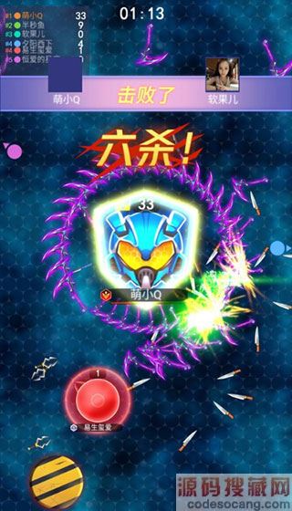 5、这是靠武器数玩的,当然也有技能,速度和体积,碰到比自己大的不要怕,手指停下,自动防御,防御就是最好的进攻。