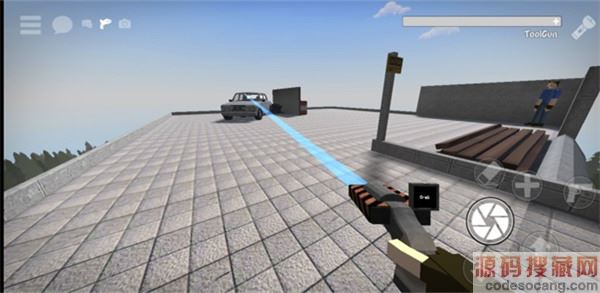 操作很简单,左边移动右边射击,点击左上角进行切换武器,使用手中的这把武器对着物体点击,会出现蓝色的引线,将它们链接起来,就可以通过滑动屏幕来移动这些物品的位置了。
