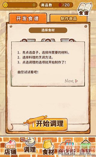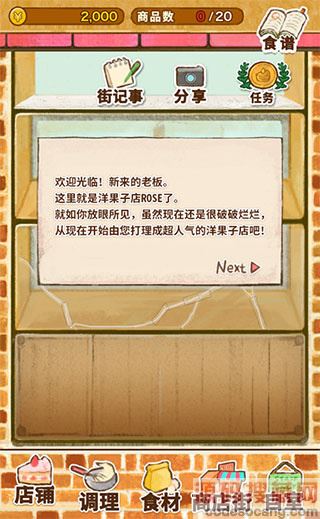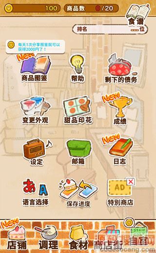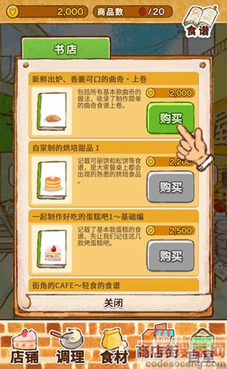 3、点击底部的【商业街】可以采购各种食谱来制作美味的甜品。